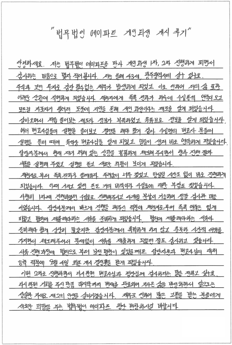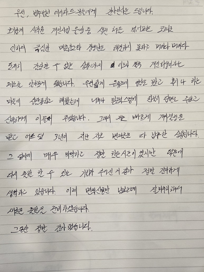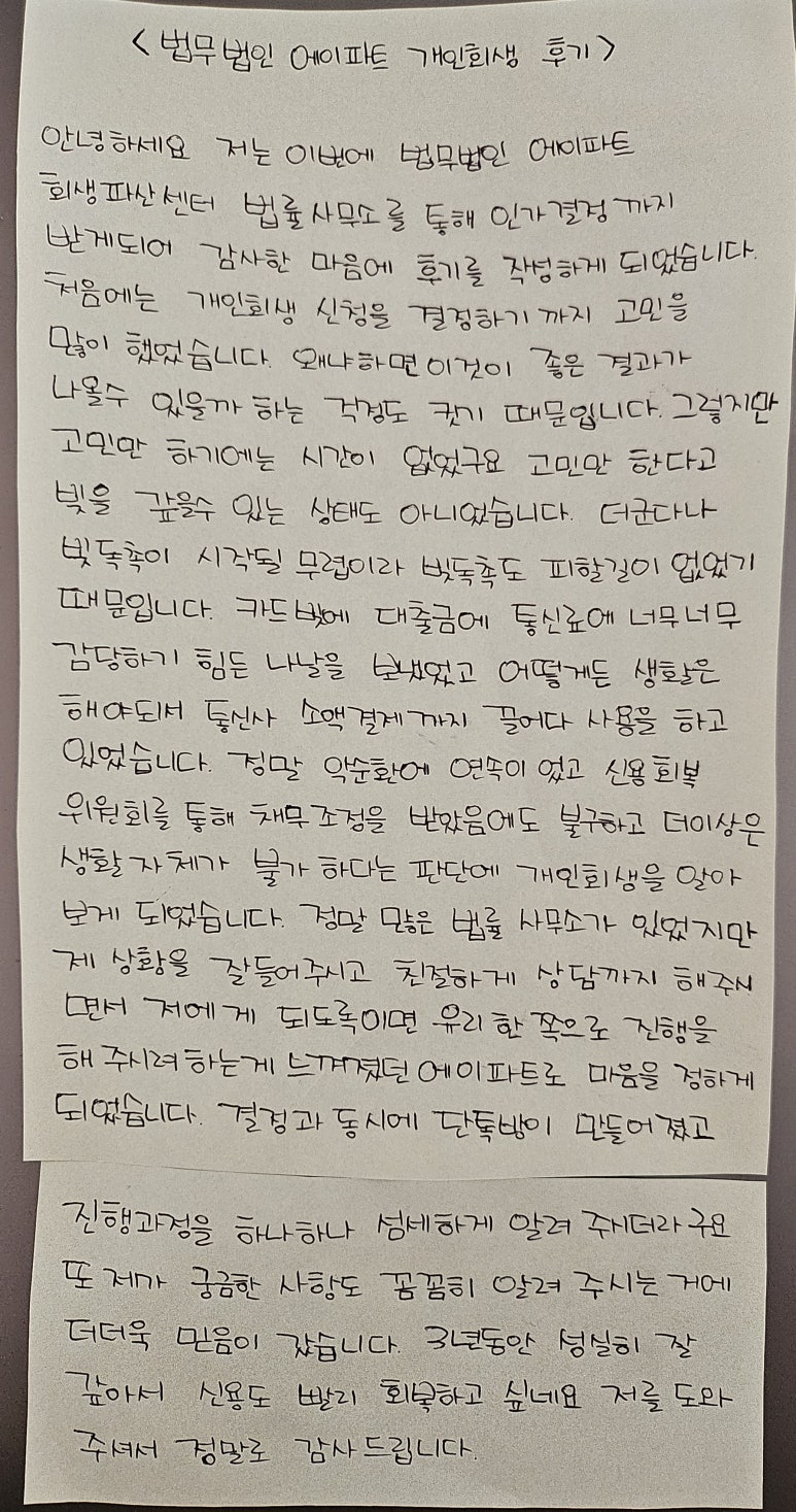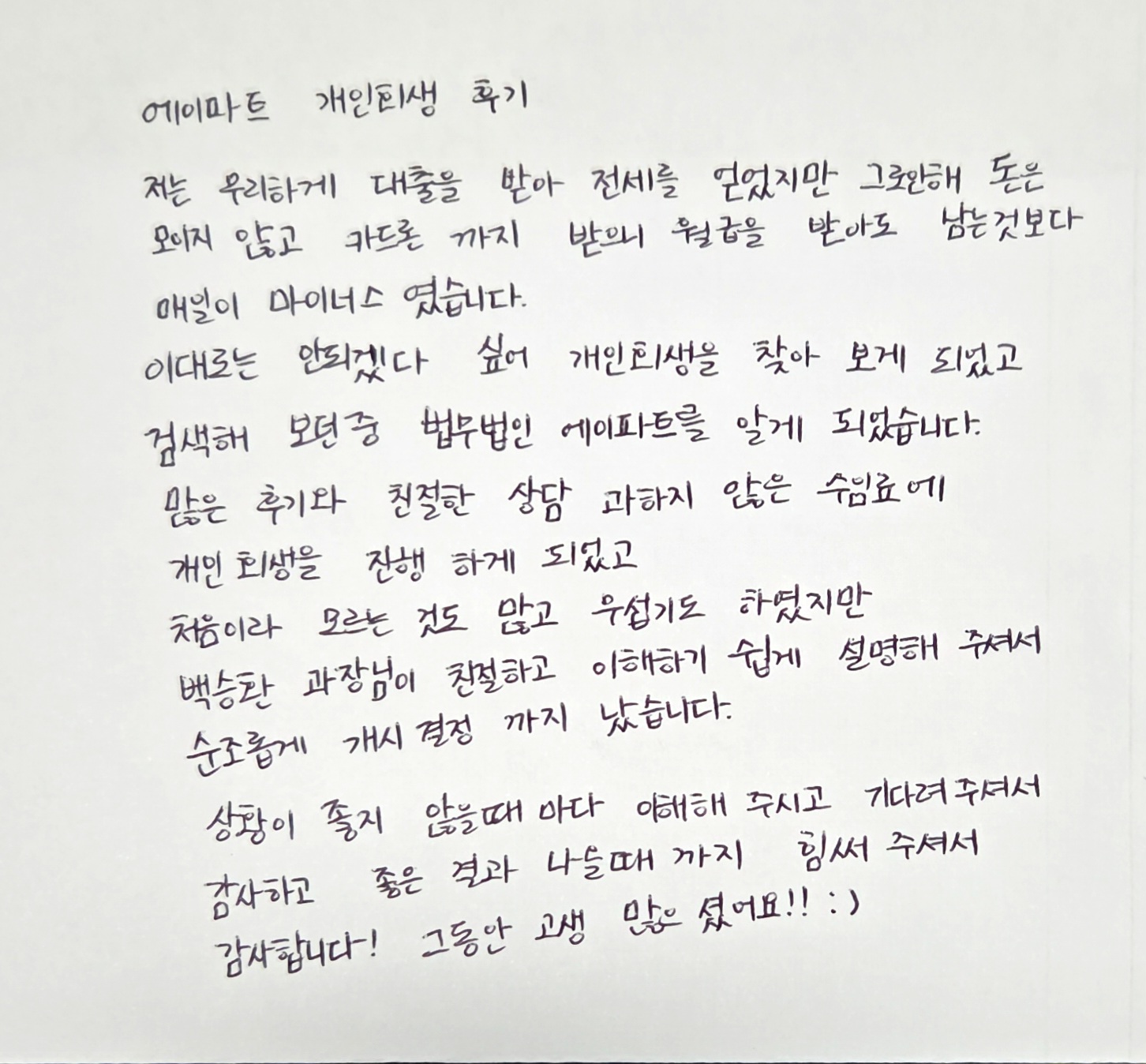 덕분에 좋은 회생 조건으로 3년이란 시간을 견뎌낼 수 있었던 것 같습니다.2025-11-03 -