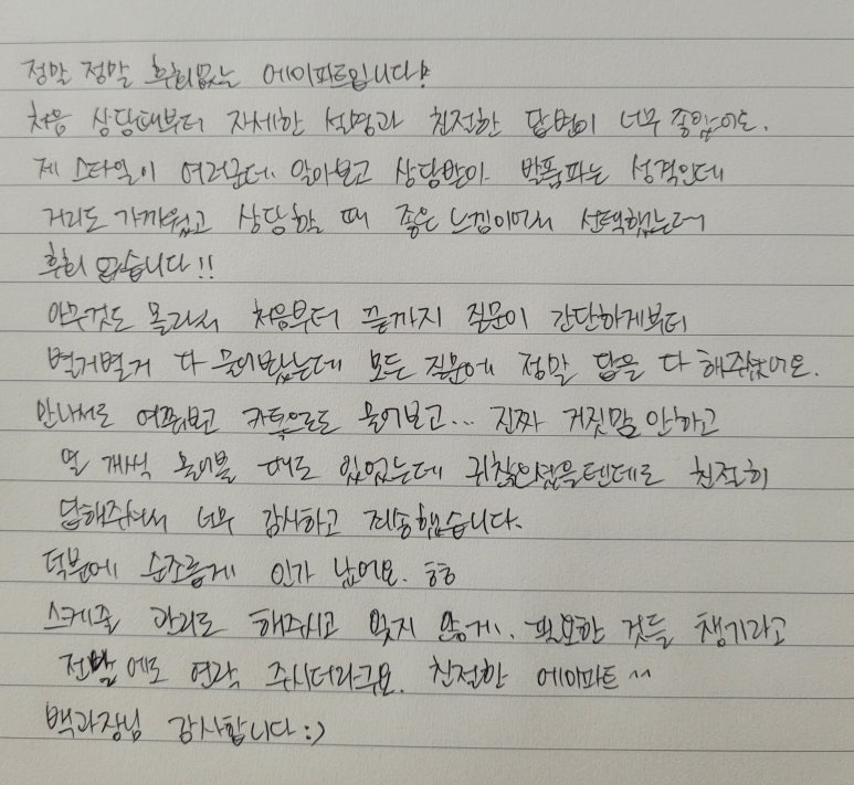 궁금한 점이 생겼을 때 바로 전화통화가 가능했으며, 일사천리로 진행되었습니다.2025-10-13 -
